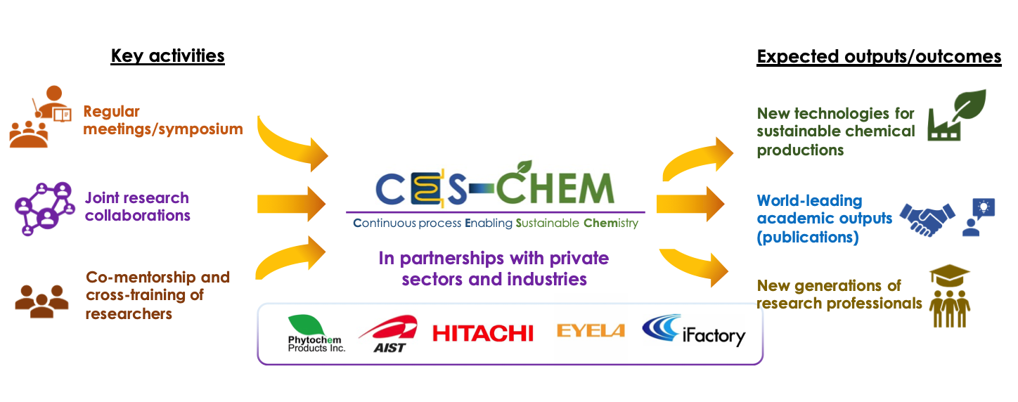 The objectives of this official consortium are to facilitate knowledge sharing, support collaborative research activities, provide a joint or cross-training platform for students and early-career professionals, and form strong partnerships with industries to foster the implementation of continuous-flow technologies. These objectives will be addressed through multiple key activities including regular meetings, international symposium, joint research collaboration (with academic outputs such as publications), and co-mentoring of researchers or research exchanges.